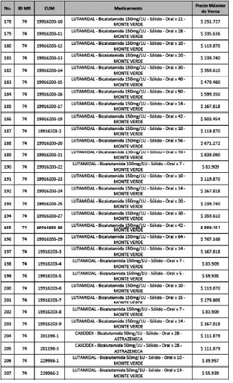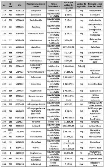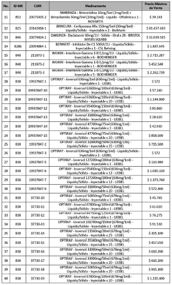 Por la cual se establece el listado de los medicamentos sujetos al régimen de control directo de precios, se fija el precio máximo de venta y el precio por unidad de regulación de Medicamentos Vitales No Disponibles y se dictan otras disposiciones.