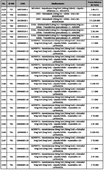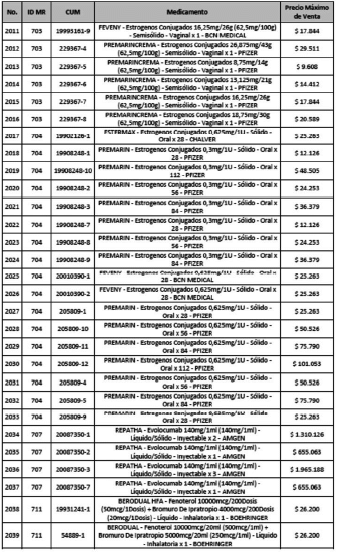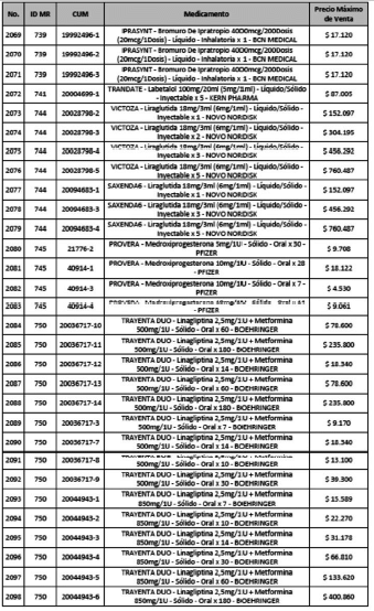 ARTÍCULO 2. PRECIO MÁXIMO DE VENTA DE MEDICAMENTOS ANTERIORMENTE REGULADOS. <Circular derogada por la Circular 13 de 2022. Surte efecto a partir del 26 de septiembre de 2022> Fíjese el Precio Máximo de Venta de los medicamentos regulados en anteriores circulares por esta Comisión, así: