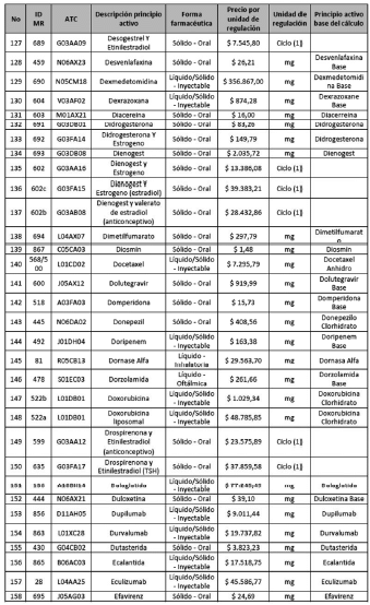 Que la Comisión Nacional de Precios de Medicamentos y Dispositivos Médicos (CNPMDM) evidenció que los mercados relevantes ID 98 correspondiente al principio activo insulina lispro con forma farmacéutica líquido-sólido inyectable para el CUM 224030-7; e ID 701 correspondiente al principio activo estriol con forma farmacéutica semisólido-vaginal para los CUM 19997491-5 y 19997491-6, y serán eliminados por pertenecer a muestras médicas según lo reportado en el registro sanitario expedido por el INVIMA.