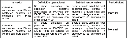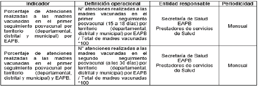Tabla 2. Indicadores de seguimiento a la atención de las gestantes vacunadas y sus hijos