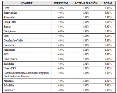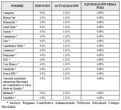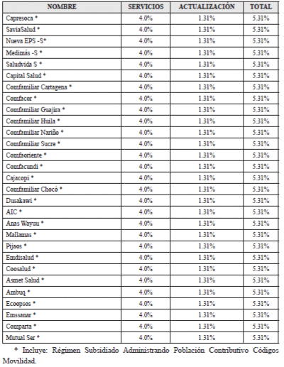 - Régimen Contributivo. Para la vigencia 2019 se fijó el incremento de la UPC en 5.31%. El porcentaje de este incremento, para recuperar y mantener el valor adquisitivo de la Unidad de Pago por Capitación (UPC) es de 4.0%, el cual corresponde a los servicios que se venían prestando y el restante 1.31%, hace referencia a la actualización de los beneficios en salud.