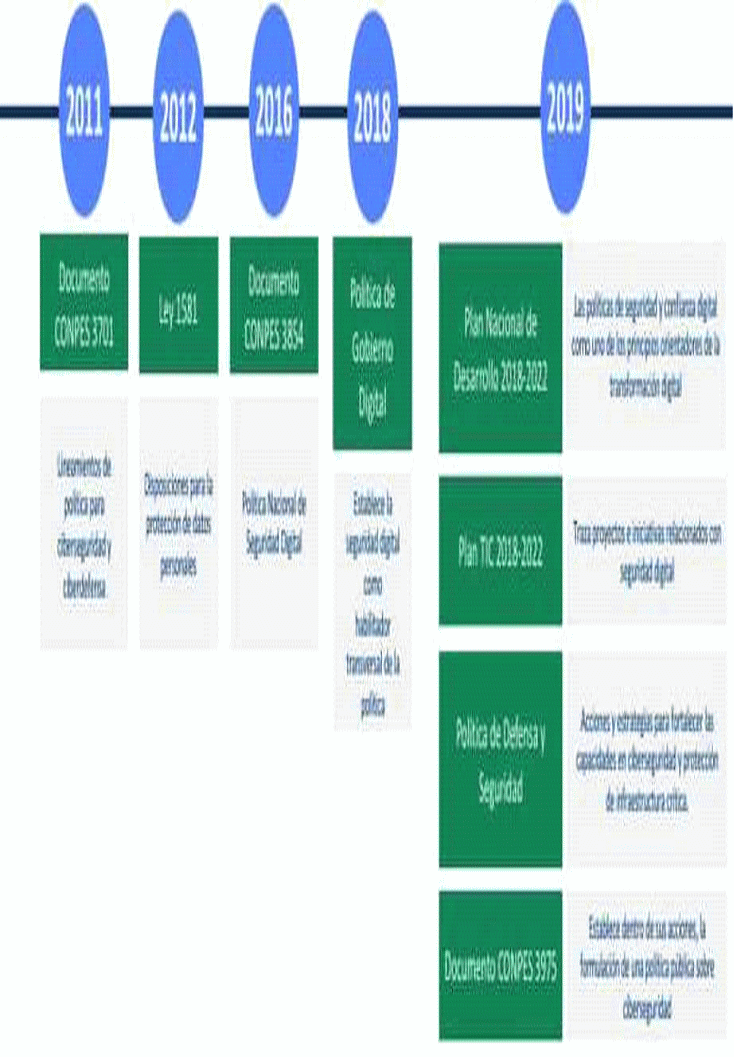 Figura 1. Implementación de políticas y estrategias desde el Gobierno nacional para brindar seguridad y defensa en el ciberespacio10