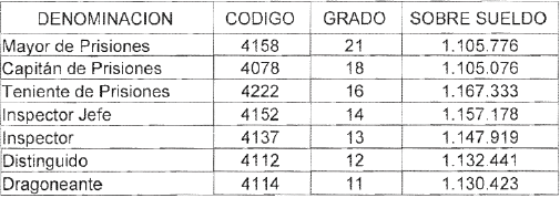 ARTÍCULO 27. SOBRESUELDO. A partir del 1 de enero de 2025, los sobresueldos mensuales para el personal carcelario y penitenciario, cuyos empleos se relacionan a continuación serán los siguientes: