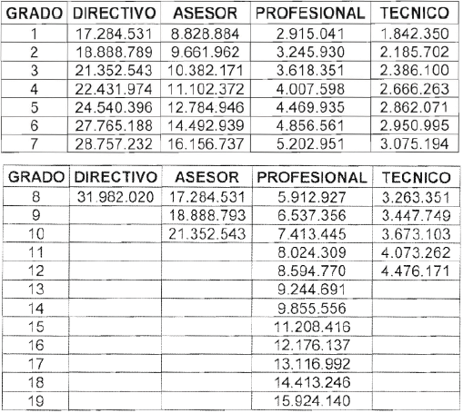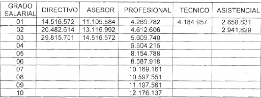 ESCALA SALARIAL DE LOS EMPLEOS PÚBLICOS DE LAS AGENCIAS ESTATALES DE NATURALEZA ESPECIAL, DEL SECTOR DESCENTRALIZADO DE LA RAMA EJECUTIVA DEL ORDEN NACIONAL.