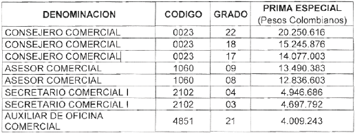 PRIMA ESPECIAL DE QUE TRATA EL ARTÍCULO 4° DEL DECRETO NÚMERO 4971 DE 2009 PARA LOS FUNCIONARIOS DE LA PLANTA EXTERNA DEL MINISTERIO DE COMERCIO, INDUSTRIA Y TURISMO.