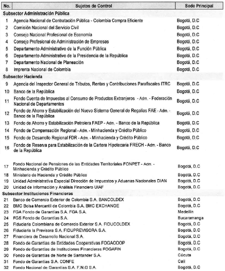 ARTÍCULO 7o. CONTRALORÍA DELEGADA PARA LA GESTIÓN PÚBLICA E INSTITUCIONES FINANCIERAS. <Resolución derogada por el artículo 33 de la Resolución REG-EJE-0093 de 2021> La Contraloría Delegada para la Gestión Pública e instituciones Financieras será competente para ejercer vigilancia y control fiscal a los siguientes sujetos de control: