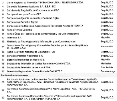 ARTÍCULO 4o. CONTRALORÍA PARA EL SECTOR DE TECNOLOGÍAS DE LA INFORMACIÓN Y LAS COMUNICACIONES. <Resolución derogada por el artículo 33 de la Resolución REG-EJE-0093 de 2021> La Contraloría Delegada para el Sector de Tecnologías de la Información y las Comunicaciones será competente para ejercer la vigilancia y el control fiscal a los siguientes sujetos de control: