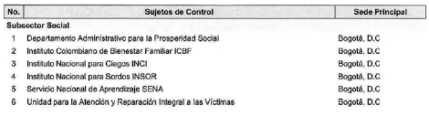 ARTÍCULO 8o. CONTRALORÍA DELEGADA PARA EL SECTOR INCLUSIÓN SOCIAL. <Resolución derogada por el artículo 33 de la Resolución REG-EJE-0095 de 2021> La Contraloría Delegada para el Sector Inclusión Social, será competente para ejercer la vigilancia y el control fiscal a los siguientes sujetos de control: