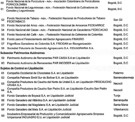 ARTÍCULO 2o. CONTRALORÍA DELEGADA PARA EL SECTOR AGROPECUARIO. <Resolución derogada por el artículo 33 de la Resolución REG-EJE-0095 de 2021> La Contraloría de legada para el Sector Agropecuario será competente para ejercer vigilancia y control fiscal a los siguientes sujetos de control: