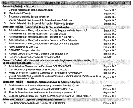 ARTÍCULO 14. CONTRALORÍA DELEGADA PARA EL SECTOR TRABAJO. <Resolución derogada por el artículo 33 de la Resolución REG-EJE-0097 de 2021> La Contraloría Delegada para el Sector Trabajo será competente para ejercer la vigilancia y el control fiscal a los siguientes sujetos de control: