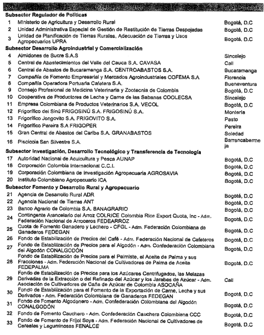 ARTÍCULO 2o. CONTRALORÍA DELEGADA PARA EL SECTOR AGROPECUARIO. <Resolución derogada por el artículo 33 de la Resolución REG-EJE-0150 de 2025> La Contraloría Delegada para el Sector Agropecuario será competente para ejercer vigilancia y control fiscal a las siguientes entidades: