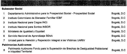 ARTÍCULO 8o. CONTRALORÍA DELEGADA PARA EL SECTOR INCLUSIÓN SOCIAL. <Resolución derogada por el artículo 33 de la Resolución REG-EJE-0150 de 2025> La Contraloría Delegada para el Sector Inclusión Social, será competente para ejercer la vigilancia y el control fiscal a las siguientes entidades: