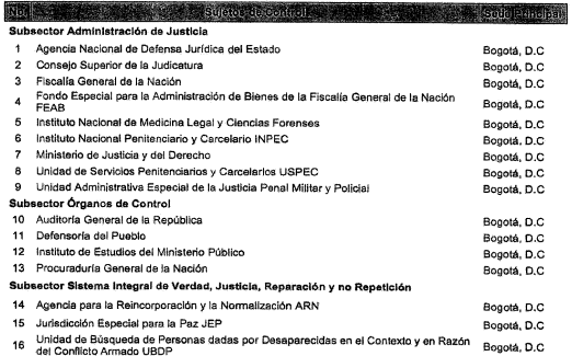 ARTÍCULO 10. CONTRALORÍA DELEGADA PARA EL SECTOR JUSTICIA. <Resolución derogada por el artículo 33 de la Resolución REG-EJE-0150 de 2025> La Contraloría Delegada para el Sector Justicia será competente para ejercer la vigilancia y el control fiscal a las siguientes entidades: