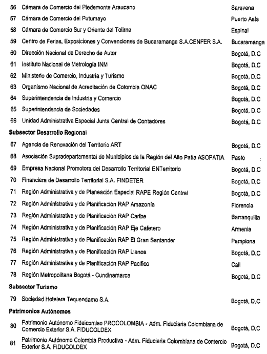 ARTÍCULO 3o. CONTRALORÍA DELEGADA PARA EL SECTOR COMERCIO Y DESARROLLO REGIONAL. <Resolución derogada por el artículo 33 de la Resolución REG-EJE-0150 de 2025> La Contraloría Delegada para el Sector Comercio y Desarrollo Regional será competente para ejercer la vigilancia y el control fiscal a las siguientes entidades: