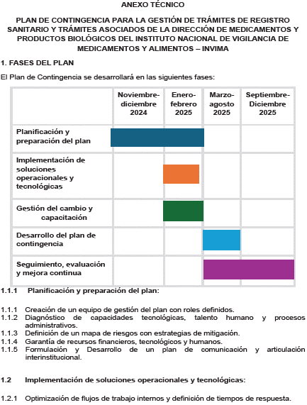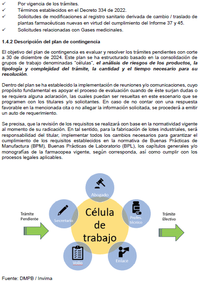 Por todo lo expuesto anteriormente, el Invima, afronta dificultades administrativas que inciden en los tiempos de respuesta a los diferentes trámites presentados ante el Instituto, es así que, se debe implementar un Plan de Contingencia que permita gestionar las solicitudes de registros sanitarios y trámites asociados.