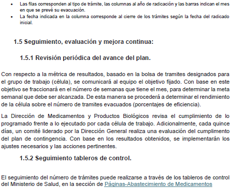 PARÁGRAFO 2o. Los resultados y gestiones adelantadas en el marco del Plan de Contingencia serán presentadas por parte de la Dirección de Medicamentos y Productos Biológicos de manera mensual en el Comité Institucional de Gestión y Desempeño de la Entidad, de acuerdo con la estructura definida por la Secretaria Técnica del Comité con el Apoyo de la Oficina Asesora Jurídica.