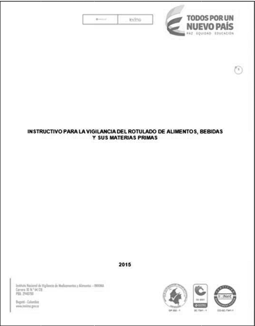 Se diseñó el INSTRUCTIVO PARA LA VIGILANCIA DEL ROTULADO DE ALIMENTOS, BEBIDAS Y SUS MATERIAS PRIMAS, orientado a unificar los criterios para la vigilancia del rotulado por parte de los funcionarios de las ETS. Así como, para apoyar y articular acciones entre el INVIMA y las ETS en la ejecución de las actividades de inspección, vigilancia y control del rotulado de alimentos comercializados, almacenados y transportados en el país.