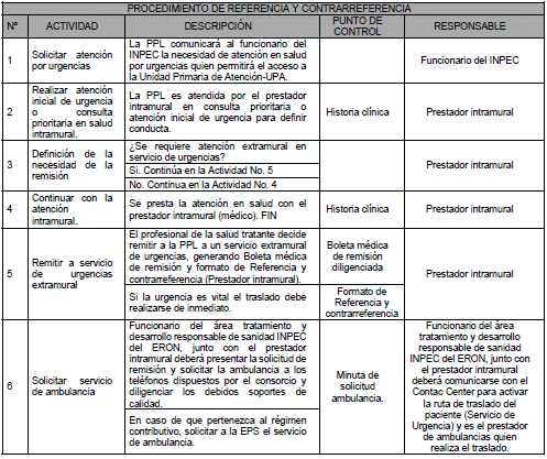Corresponde al INPEC y a la USPEC, esta última a través de la entidad administradora de los recursos del Fondo Nacional de Salud, gestionar los procesos de referencia y contrarreferencia tanto para la persona a cargo del Fondo Nacional de Salud como para la PPL, con la entidad responsable de su aseguramiento, la cual tiene la obligación de definir de manera prioritaria el prestador de servicios de salud al que se debe remitir, para continuar con el manejo. En el marco de estas responsabilidades, se deben tener en cuenta las siguientes recomendaciones y responsabilidades:
