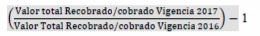 2.3 Calcular la variación porcentual del valor total recobrado/cobrado entre las vigencias, así: