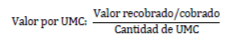 Paso 3. Cálculo del Valor de Recobro en UMC: Una vez establecida la cantidad de principio activo en UMC del respectivo CUM suministrado, se realizará el cálculo del valor por UMC, así: