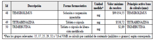 Listado de grupos relevantes con valores máximos para para el reconocimiento y pago de servicios y tecnologías no financiados con la Unidad de Pago por Capitación.
