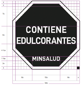 No se puede utilizar otro formato de etiquetado frontal, ni tipo de forma de sello de advertencia, ni cambiar el texto, tipo de letra, diagrama o dibujo, en ningún producto, independiente si lleva o no, etiquetado frontal de advertencia. De igual forma, no se puede utilizar la forma del etiquetado frontal de advertencia para incluir sellos con un texto diferente que haga alusión a otros nutrientes o cualquier componente de los productos envasados diferente a los que son objeto de esta regulación (sal/sodio, azúcares, grasas, edulcorantes)