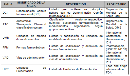 10.3. Tablas de referencia: Listados que deben ser utilizados para conocer el identificador y la descripción de aquellos atributos del estándar de datos de medicamentos que se encuentran definidos y son generados por autoridades y organizaciones nacionales e internacionales. La actualización de las Tablas de Referencia será realizada por el Invima, en coordinación con este Ministerio.