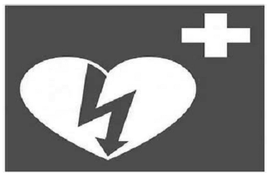 c.) Se sugiere utilizar el símbolo internacional del DEA, del ILCOR (International Liaison Committe on Resuscitation), cuadrado verde con símbolo blanco, según la norma ISO 7010 para señales y modelos de seguridad o su equivalente nacional, así: