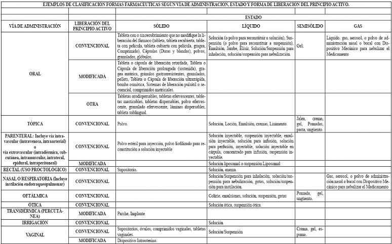 22. Forma farmacéutica: Preparación farmacéutica que caracteriza a un medicamento terminado para facilitar su administración. Se consideran como formas farmacéuticas entre otras: jarabes, tabletas, cápsulas, ungüentos, cremas, soluciones inyectables, óvulos, tabletas de liberación controlada y parches transdérmicos.