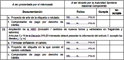 “Artículo 23.- Adoptar los formatos FNSOC-001, FNSOC-002 y FNSOC-003 y su instructivo de aplicación indicados en los Anexos I y II de la presente Resolución, para que sean aplicados por los interesados y las Autoridades Nacionales Competentes (ANC), cuando los primeros presenten notificaciones sanitarias obligatorias, solicitudes de reconocimiento, renovaciones del código de identificación e información sobre cambios de la NSO, y las ANC tengan que dar respuesta a los interesados sobre las notificaciones sanitarias obligatorias, las solicitudes de reconocimiento y las renovaciones, de acuerdo con lo previsto en la normativa andina sobre la materia.”