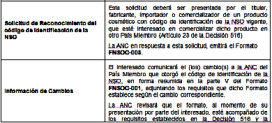 Que la Decisión 516 señala que los productos cosméticos requieren de la Notificación Sanitaria Obligatoria (NSO) para su comercialización o expendio en la Subregión y establece los requisitos que deberán acompañar a la Notificación Sanitaria Obligatoria y la solicitud de reconocimiento del código de identificación asignado por la Autoridad Nacional Competente para facilitar el etiquetado, la vigilancia y el control sanitario;