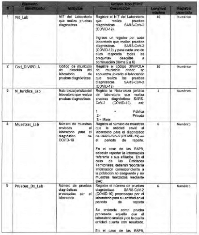 Anexo Técnico Archivo tipo PT017 - Reporte de pruebas diagnosticas por laboratotio