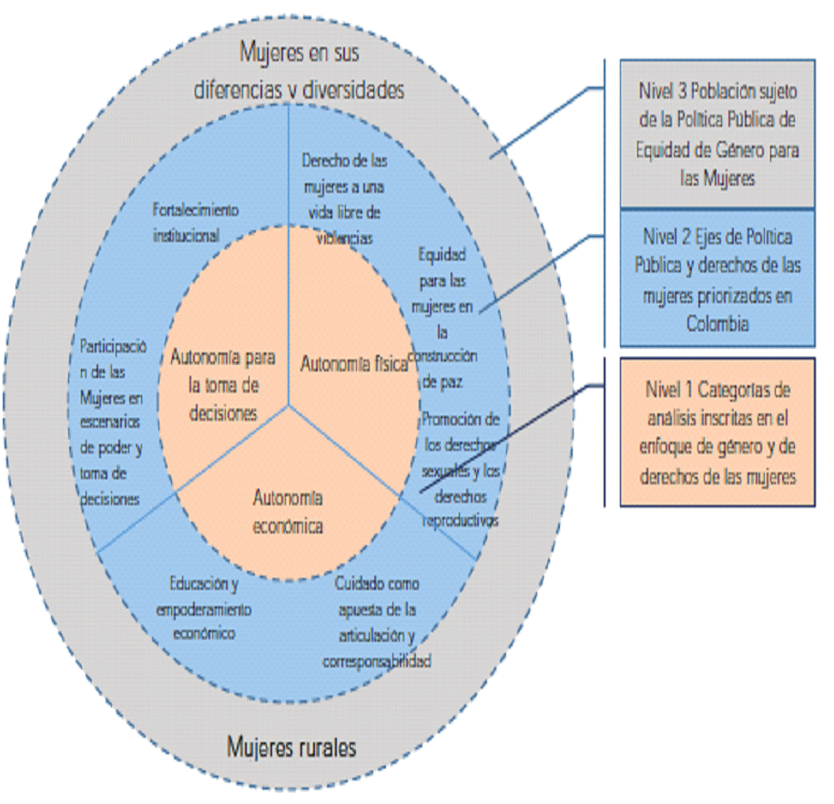 Palabras clave: equidad de género, autonomía económica, participación, salud, mujeres libres de violencia, paz y seguridad, institucionalidad, mujer rural.