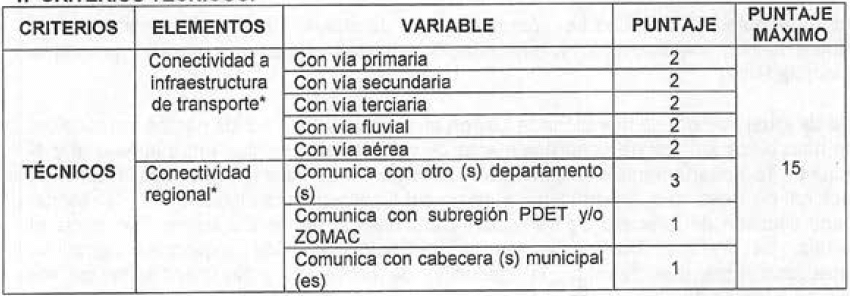 *Las variables pueden ser sumadas, es decir, si un corredor conecta con una via primaria, secundaria y terciaria y con via fluvial y área en el elemento vial, sumada 10 puntos. Los elementos que no cuentan con este simbolo*, no sumara sus puntuaciones