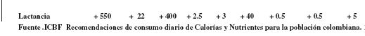 RECOMENDACIONES DE CONSUMO DIARIO DE CALORIAS Y NUTRIENTES PARA LA POBLACION COLOMBIANA 1988.