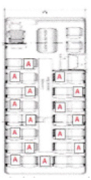- La ubicación en los puestos debe ser de una persona por fila ubicándose de manera intercalada, siendo “A” el puesto a ocupar por persona, como se distribuye en la siguiente figura: