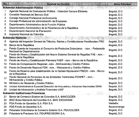 ARTÍCULO 7o. CONTRALORÍA DELEGADA PARA LA GESTIÓN PÚBLICA E INSTITUCIONES FINANCIERAS. <Resolución derogada por el artículo 33 de la Resolución REG-EJE-0097 de 2021> La Contraloría Delegada para la Gestión Pública e instituciones financieras será competente para ejercer vigilancia y control fiscal a los siguientes sujetos de control: