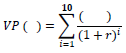 Implica la aplicación de la función de valor presente del año tarifario uno (1) al diez (10), descontando cada variable a analizar con la tasa de descuento (r) definida en el ARTÍCULO 20 de la presente resolución, así:
