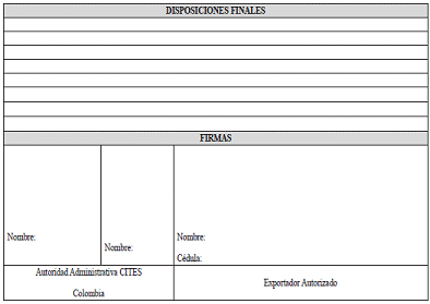 a) “Acta de control y seguimiento de pieles y partes o fracciones de pieles objeto de exportación”. Según el anexo que hace parte integral de la presente resolución. La cual, deberá ser suscrita por la autoridad administrativa CITES de Colombia y el exportador o su delegado;
