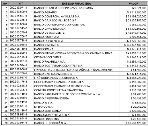 PARÁGRAFO. Los recursos serán consignados en la cuenta del Banco de la República que la entidad financiera indique en la cuenta de cobro.