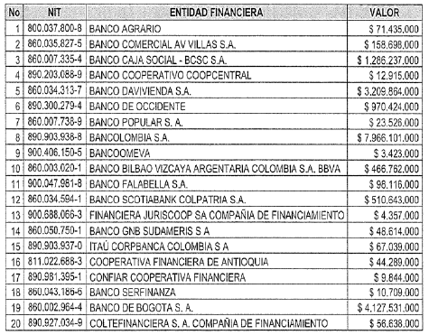 PARÁGRAFO. Los recursos serán consignados en la cuenta del Banco de la República que la entidad financiera indique en la cuenta de cobro.