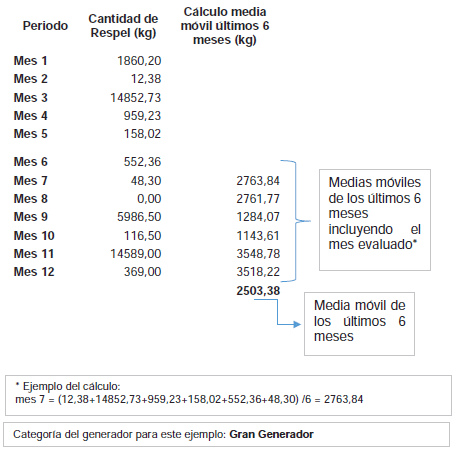 3.5 Microgenerador: Persona natural o jurídica que genera residuos o desechos peligrosos en una cantidad menor a 10 kg/mes calendario, considerando los períodos de tiempo de generación del residuo y llevando promedios ponderados y media móvil de los últimos seis (6) meses de las cantidades pesadas.