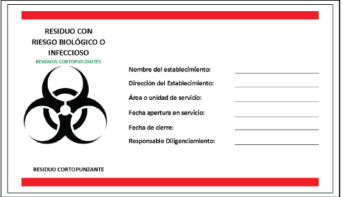 | 6. Tratamiento interno de residuos con riesgo biológico o infeccioso (aplica para aquellos casos en que el generador realice esta actividad en sus instalaciones) a) Disposiciones generales para el tratamiento interno de residuos o desechos con riesgo biológico o infeccioso por procesos diferentes al térmico con combustión. b) Información a incluir en el PGIRASA sobre el tratamiento interno de residuos o desechos peligrosos con riesgo biológico o infeccioso. c) Procedimiento para demostrar que el residuo tratado no presenta riesgo biológico o infeccioso. d) Del manejo de los residuos procedentes del tratamiento interno de residuos con riesgo biológico o infeccioso. e) Monitoreo al tratamiento interno de residuos con riesgo biológico o infeccioso. | |
