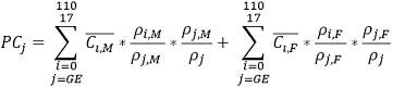 | ñi,F | Número total de pacientes en el grupo etario (j) y del género femenino. |