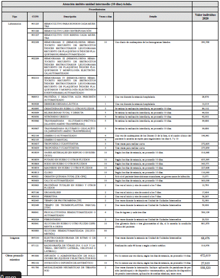 Que con el propósito de brindar mayor claridad a los actores del sistema de salud, respecto al contenido y valor de las tarifas definidas para los servicios de Unidad de Cuidado Intensivo y de Unidad de Cuidado Intermedio, se incluye un anexo técnico con el listado y detalle de los procedimientos, medicamentos e insumos de cada uno de los servicios.