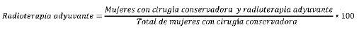 Mide la proporción de mujeres con cáncer de mama a quienes se les practicó cirugía conservadora en el periodo como parte del manejo inicial del cáncer y que recibieron tratamiento con radioterapia adyuvante.