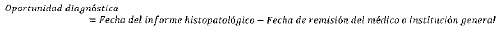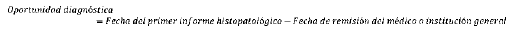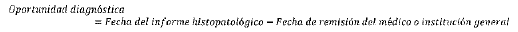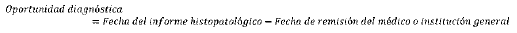 Mide el tiempo transcurrido en número de días, entre la fecha de remisión del médico o institución prestadora de servicios general y la fecha del primer informe histopatológico de diagnóstico.
