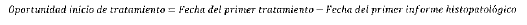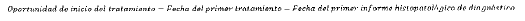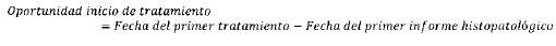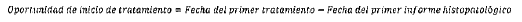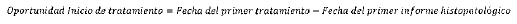 Mide el tiempo transcurrido en número de días, entre la fecha del primer informe histopatológico de diagnóstico y el primer tratamiento (quimioterapia, radioterapia o cirugía).