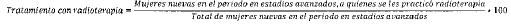 - Numerador: Número de mujeres reportadas como nuevas en el periodo con cáncer de cuello uterino en estadios avanzados, a quienes se les practicó radioterapia.