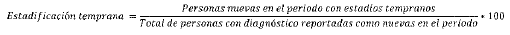 - Numerador: Número de mujeres con cáncer de cuello uterino, reportadas como nuevas en el periodo, en estadios tempranos de la enfermedad.